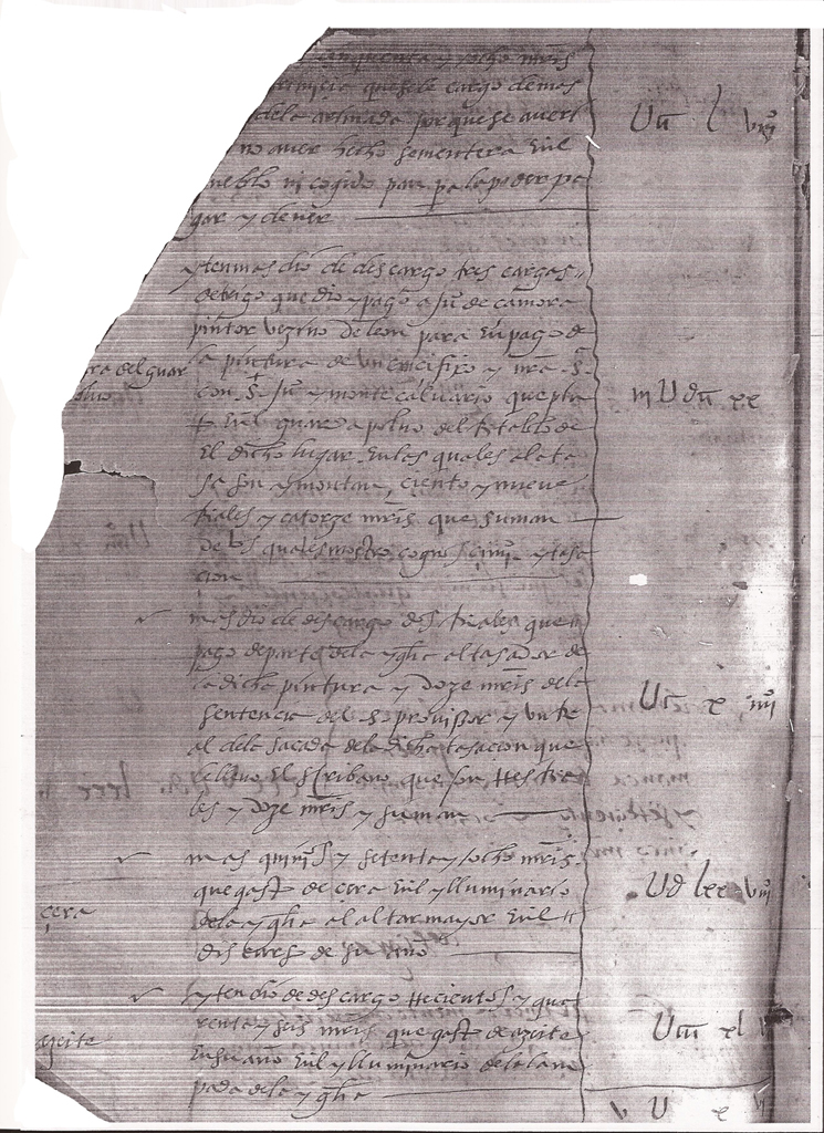 Hoja2bApunte de 1572 donde se hace mención al guardapolvo del Retablo y su costo.