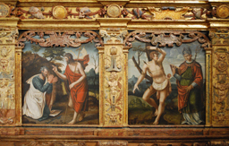 También es evidente el ajuste del retablo al hueco, razón para asegurar que la obra se hizo expresamente para el lugar que ocupa. Tampoco hay una predela al uso; todo el conjunto se apoya en una viga que aunque tallada -y cortada – en una actuación posterior, no es el conocido sotobanco de los retablos renacentistas españoles.
