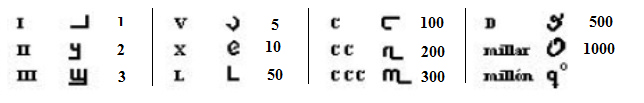 En la tabla siguiente está la la grafía de los números romanos y su correspondencia con los guarismos actuales de origen árabe: