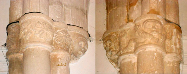 Estos capiteles tienen una perfecta correspondencia con las columnas trilobuladas pero por su parte interior aparentemente se ha añadido una especie de ménsula para arranque de nervaduras y con unos motivos decorativos un poco forzados en relación al resto del capitel.